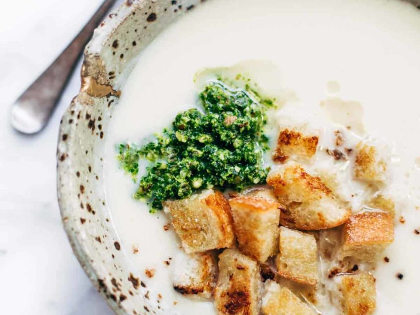 Featured comment I made this soup last night with the kale pesto and croutons and it’s utterly divine! Can’t wait to eat the leftovers for … Continue reading 5 Ingredient Creamy Cauliflower Soup with Kale Pesto