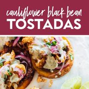 Keywords: tostada recipe, cauliflower black bean, vegetarian tostada