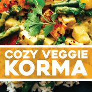 Cozy Veggie Korma! A boatload of comforting vegetables like potatoes, bell peppers, and green beans, and a creamy golden sauce with onion, garlic, ginger, warming spices. So comforting!
