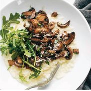 Keywords: oven risotto, lemon arugula salad, roasted mushrooms