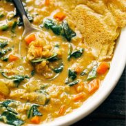 - Serve with socca or some other flatbread for dipping and dunking. Wholesome, colorful, and SO yummy!
