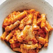- Ziti: Cook ziti according to package directions. Toss with about two thirds of the pasta sauce. Reserve remaining 2-or-so cups of sauce.