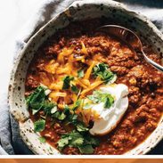 Toppings: For vegetarian chili – sour cream and cheddar or queso fresco. For vegan chili – cilantro, avocado, pickled onion or jalapeno, radishes, tortilla chips.